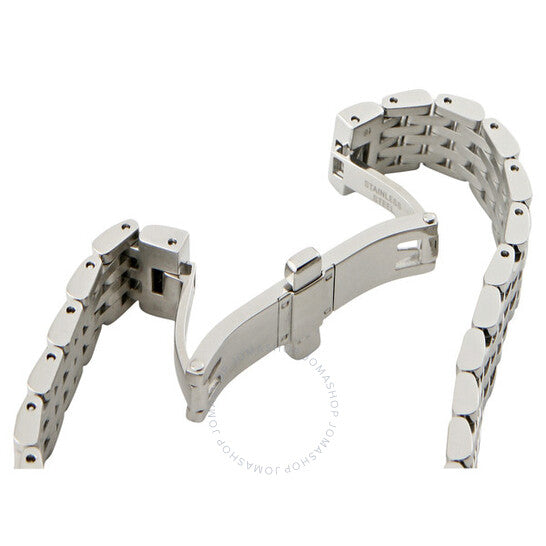 Stainless steel case with a stainless steel bracelet. Fixed satinless steel bezel set with 80 white diamonds (~0.50 ct.). Textured white enamel dial with black hands and black Arabic numeral hour markers. Seconds sub-dial at the 6 o'clock position. Battery operated Swiss quartz movement. Scratch resistant sapphire crystal. Solid case back. Case dimensions: 22.5 mm x 33.65 mm. Case thickness 8 mm. Deployment clasp with push button release. Water resistant at 30 meters / 100 feet. Functions: hours, minutes, small seconds. AdditionalInfo: set with 80 white diamonds (~0.50 ct.). Michele Coquette Petite Diamond Ladies Watch MWW08A000186.