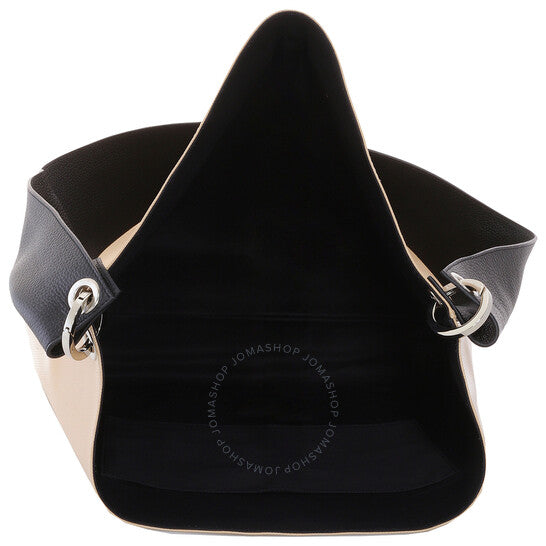 Cahu Ladies Tote. SKU: LDCR-N-CREAM-NOIRE. Color: Cream/Noire. Cahu Cream Leather Tote Bag. This Cahu tote bag features a sleek and modern design with a glossy cream exterior and a subtle textured finish. The minimalist silhouette is complemented by a wide, comfortable shoulder strap made of soft, pebbled leather. The brand's logo is subtly displayed in white, adding a touch of elegance to the bag's understated style. Perfect for everyday use, this tote offers both style and functionality.