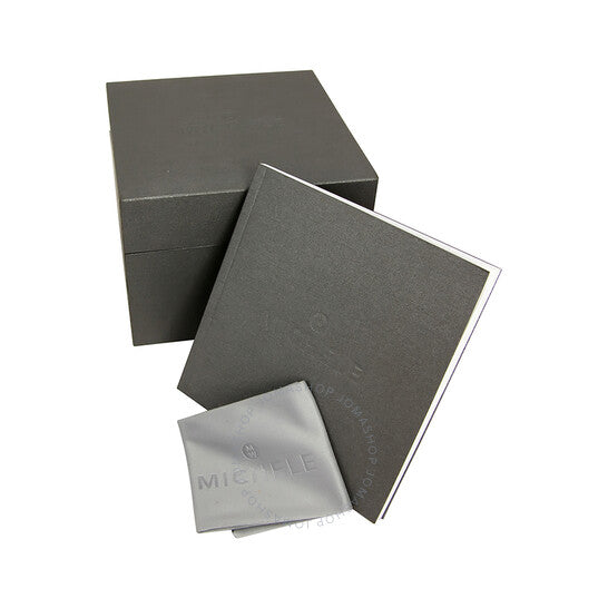 Stainless steel case and link bracelet. Fixed stainless steel bezel set with diamonds. Mother of pearl dial with luminous hands and diamond hour markers. Minute markers around the outer rim. Three sub-dials displaying: day of the week, 30 minutes, and 60 seconds. Quartz movement. Scratch resistant sapphire crystal. Solid case back. Case diameter: 36 mm. Double folding push button clasp. Water resistant at 50 meters/ 165 feet. Functions: hours, minutes, seconds, calendar, chronograph. Michele CSX Mother of Pearl Diamond Ladies Watch MWW03M000114.