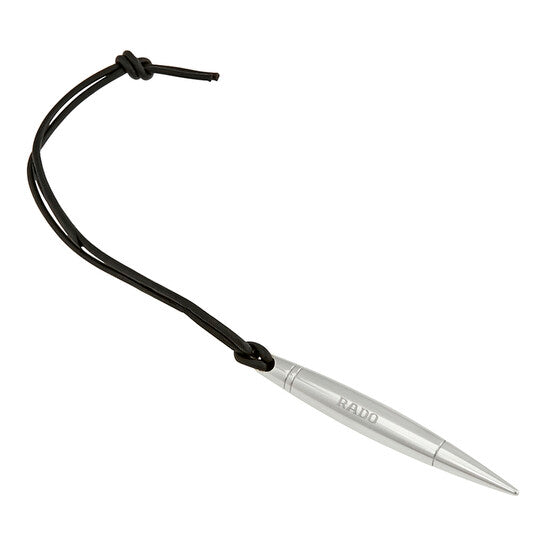 Silver-tone ceramic with plasma treatment case with a silver ceramic with plasma treatment bracelet. Fixed silver-tone ceramic with plasma treatment bezel. Black dial with silver-tone hands and Arabic numeral and index hour markers. Minute markers around the outer rim. Dial Type: Analog. Date display at the 6 o'clock position. Chronograph - three sub-dials displaying: 60 second, 30 minute. Rado Calibre 604 automatic movement. Scratch resistant sapphire crystal. Pull / push crown. Transparent case back. Oval case shape, case size: 44 mm, case thickness: 15 mm. Band width: 25 mm, band length: 8 inches. Titanium double fold over with push button clasp. Water resistant at 100 meters / 330 feet. Functions: chronograph, date, hour, minute, small second. Casual watch style. Watch label: Swiss Made. Rado D-Star Chronograph Automatic Black Dial Men's Watch R15198152.