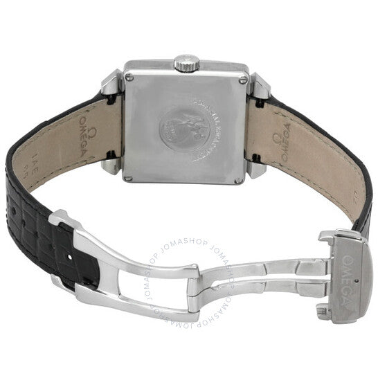 Stainless steel case with a black leather bracelet. Fixed stainless steel bezel. Black dial with luminous hands and markers. Date displays at the 3 o'clock position. Automatic movement. Scratch resistant sapphire crystal. Case diameter: 35mm. Deployment clasp. Water resistant at 50 meters (165 feet). Omega Deville Men's Watch 7813.50.31