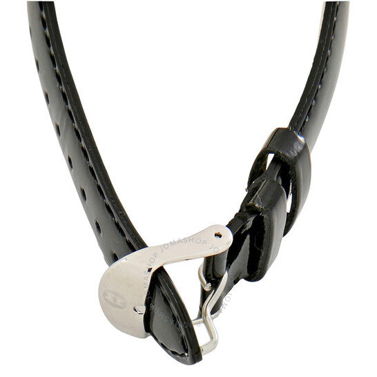 Stainless steel case with a black leather bracelet. Fixed stainless steel bezel set with 108 diamonds. White mother of pearl dial with luminous hands and index hour markers hour markers. Minute markers on the outer rim. Luminescent hands and dial markers. Date displays at the 6 o'clock position. Chronograph - three sub-dials displaying: 60 seconds, 30 minutes and 1/10th of a second. Swiss quartz movement. Scratch resistant sapphire crystal. Fluted stainless steel crown with MW logo. Solid case back. Case dimensions: 33 mm x 35 mm. Tang clasp. Water resistant at 50 meters / 165 feet. Michele Deco Ladies Diamond Watch MWW06A000006.
