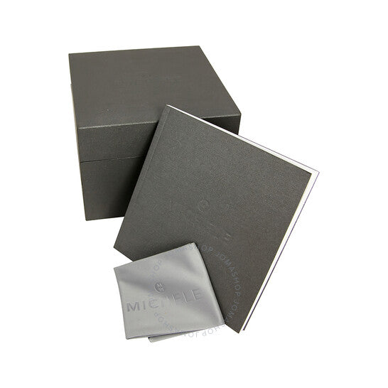 Stainless steel case with a two-tone stainless steel bracelet. Fixed 18kt yellow gold plated bezel. Mother of pearl dial with gold-tone hands and diamond hour markers. Minute markers around the outer rim. Dial Type: Analog. Luminescent hands. Date display at the 6 o'clock position. Day of the week sub-dial. Chronograph - two sub-dials displaying: 60 second and 30 minute. Swiss quartz movement. Scratch resistant sapphire crystal. Pull / push crown. Solid case back. Case dimensions: 36.5 mm x 38 mm. Rectangle case shape. Band width: 20 mm. Deployment clasp with push button. Water resistant at 50 meters / 165 feet. Functions: chronograph, day, date, hour, minute, second. Dress watch style. Michele Deco XL Day Non-Diamond Two-Tone Stainless Steel Ladies Watch MWW06Z000014.