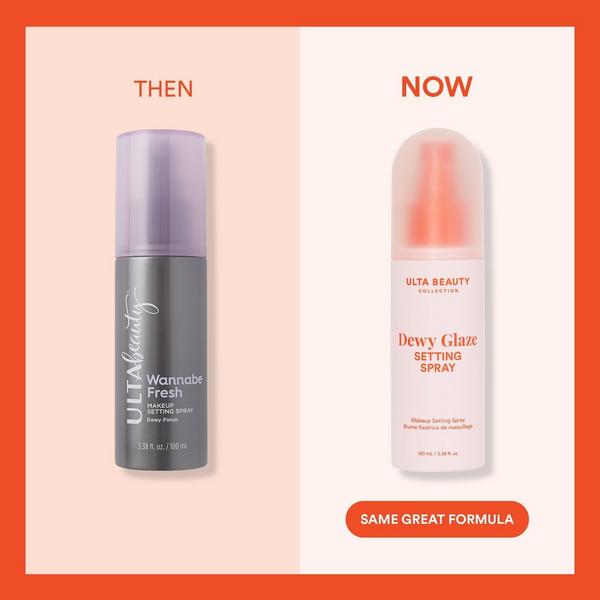 Refresh & set with Ulta Beauty Collection's Dewy Glaze Setting Spray. Spritz under makeup as a setting primer or after makeup application to keep that fresh look all day. Bonus: hydrated, dewy lovers -- this one's for you! Formerly known as Wannabe Fresh Dewy Setting Spray.