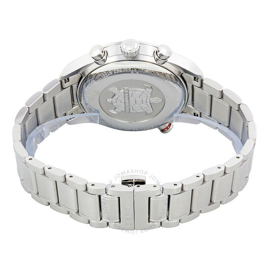 316L stainless steel case with a 316L stainless steel bracelet. Fixed stainless steel bezel with an inlaid black ring showing tachymeter markings. Black dial with luminous silver-tone hands and index hour markers. Arabic numeral minute markers (at 5 minute intervals). Minute markers around the outer rim. Dial Type: Analog. Luminescent hands and markers. Date display at the 6 o'clock position. Chronograph - three sub-dials displaying: 60 second, 30 minute and 12 hour. ETA caliber 251.294 PRD quartz movement. Scratch resistant sapphire crystal. Solid case back. Round case shape. Case size: 43 mm. Case thickness: 14 mm. Band width: 20 mm. Deployment clasp. Water resistant at 100 meters / 330 feet. Functions: chronograph, date, hour, minute, second, tachymeter. Ds-2 Series. Luxury watch style. Watch label: Swiss Made. Certina DS-2 Chronograph Black Dial Men's Watch C024.618.11.051.01.