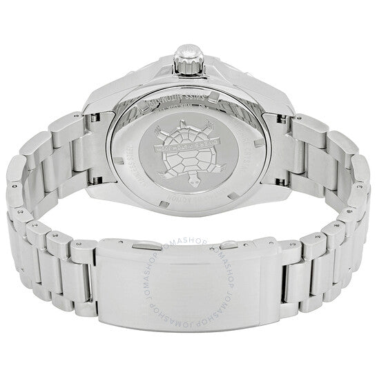 Stainless steel case with a stainless steel bracelet. Uni-directional rotating stainless steel bezel with a black aluminium ring. Black dial with luminous silver-tone arrow-shaped hands and dot hour markers. Minute markers around the outer rim. Dial Type: Analog. Luminescent hands and markers. Date display at the 3 o'clock position. Powermatic 80.111 automatic movement, containing 23 Jewels, bitting at 28800 vph, and has a power reserve of approximately 80 hours. Scratch resistant sapphire crystal. Screw down crown. Solid case back. Round case shape. Case size: 43 mm. Case thickness: 13.5 mm. Band width: 22 mm. Deployment clasp with a push button release. Water resistant at 300 meters / 1000 feet. Functions: date, hour, minute, second. Ds Action Diver Series. Dive watch style. Watch label: Swiss Made. Certina DS Action Diver Automatic Black Dial Men's Watch C032.407.11.051.00.