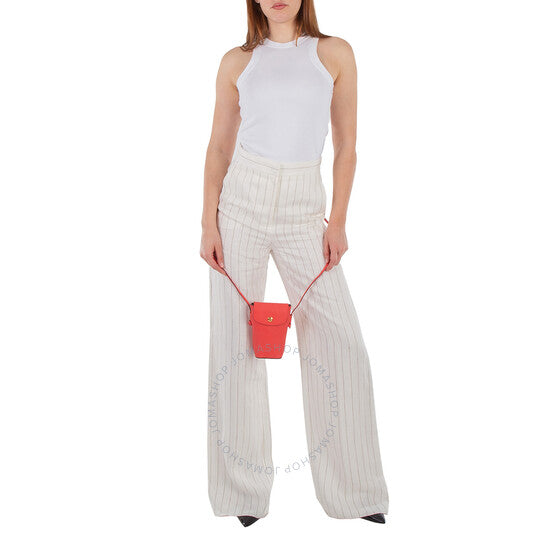 Longchamp Ladies Crossbody. SKU: 34193HYZ218. Color: Red. Size: 3.3 in (L) x 6.7 in (H) x 2.2 in (W). Longchamp Epure Phone Case With Leather Strap. The Epure Phone Case features a snap fastening, crafted from Russian leather (cowhide) with gold-colored metallic hardware, and lined with a recycled jacquard blend of polyamide and polyester, showcasing an all-over LGP design, with a main compartment. Material : Russian leather (cowhide).