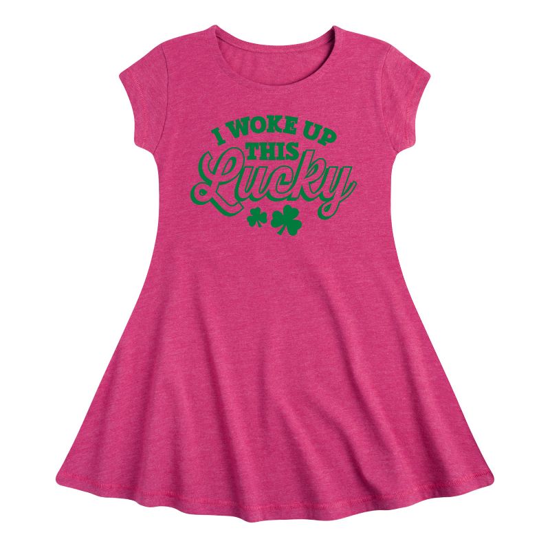 Instant Message - St. Patrick's Day - I Woke Up This Lucky - Toddler And Youth Girls Fit And Flare Dress - Instant Message is an online specialty fashion retailer for everything from funny to inspiring printed apparel. We offer a range of garments from long sleeve and relaxed fit t-shirts, to lightweight french-terry long sleeve shirts, hoodies and graphic print pullovers. Our products feature fun and trendy graphics that are perfect for any occasion and also make great gifts.