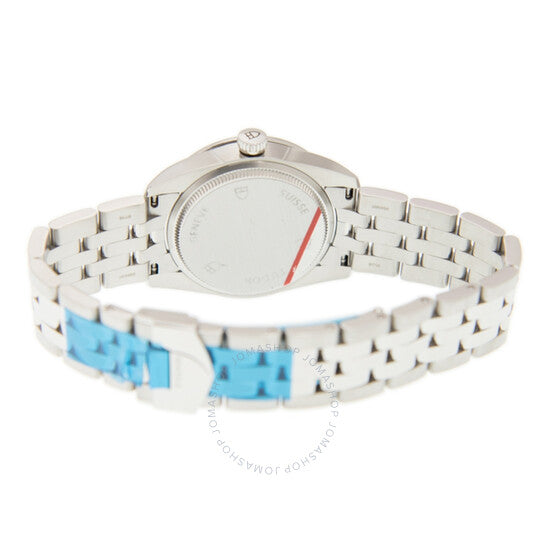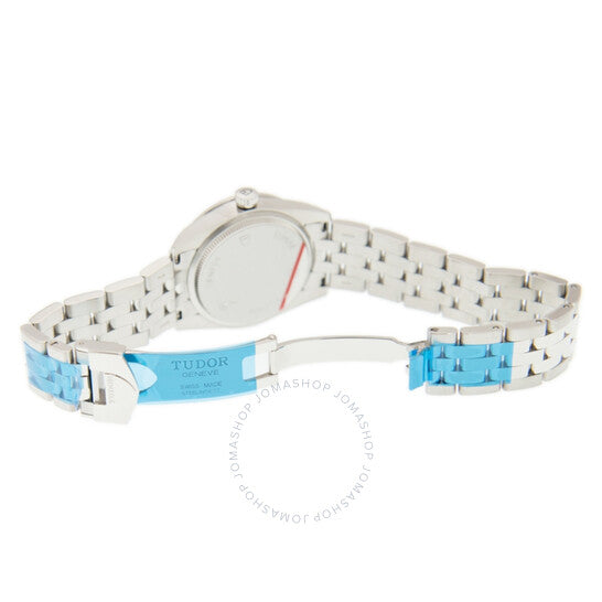 Stainless steel case with a silver-tone stainless steel bracelet. Fixed bezel. Black dial with silver-tone hands and index hour markers. Minute markers around the outer rim. Dial Type: Analog. Luminescent hands. Date display at the 3 o'clock position. ETA Caliber 2671 automatic movement with a 38-hour power reserve. Scratch resistant sapphire crystal. Round case shape. Case size: 31 mm. Deployment clasp. Water resistant at 100 meters / 330 feet. Functions: date, hour, minute, second. Additional Info: original box, international warranty card, manual (complete accessories). Luxury watch style. Watch label: Swiss Movt. Tudor Glamour Black Dial Ladies Watch 53000-0002.