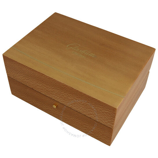 Silver-tone stainless steel case with a black leather strap. Fixed silver-tone stainless steel bezel. Silver dial with silver-tone hands and index hour markers. Dial Type: Analog. Date display near the 4 o'clock position. One subdial displaying: small second near the 7 o'clock position. Glashutte Calibre 90-01 Automatic movement, containing 41 Jewels, bitting at 28800 vph, and has a power reserve of approximately 42 hours. Scratch resistant sapphire crystal. Skeleton case back. Round case shape, case size: 39.3 mm, case thickness: 11.6 mm. Deployment clasp. Water resistant at 100 meters / 330 feet. Functions: big date, hour, minute, small second. Panomatic Date Series. Dress watch style. Watch label: Made in Germany. Item Variations: 9001020204. Glashutte PanoMaticDate Men's Watch 90-01-02-02-04.