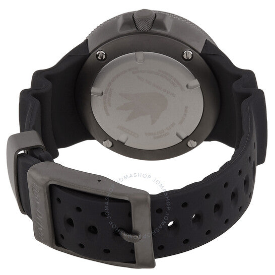 Gray stainless steel case with a black polyurethane strap. Uni-directional rotating gray stainless steel bezel. Red dial with black hands and index hour markers. Minute markers around the outer rim. Dial Type: Analog. Luminescent hands and markers. Date display at the 3 o'clock position. Citizen Caliber Eco-Drive B873 eco-drive movement. Scratch resistant mineral crystal. Screw down crown. Solid case back. Round case shape, case size: 48.2 mm. Buckle clasp. Water resistant at 300 meters / 1000 feet. Functions: date, hour, minute, second, solar-powered. Godzilla Series. Dive watch style. Watch label: Japan Movt. Citizen Godzilla Eco-Drive Red Dial Men's Watch BJ8059-03Z.