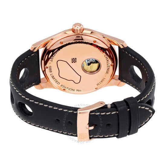Rose gold-tone stainless steel case with a black leather strap. Fixed rose gold-tone bezel. White dial with luminous rose gold-tone hands and index hour markers. Arabic numerals mark the 6, 9 and 12 o'clock positions. Minute markers around the outer rim. Dial Type: Analog. Luminescent hands and markers. Date display at the 3 o'clock position. Automatic movement. Scratch resistant sapphire crystal. Case size: 43 mm. Case thickness: 10.5 mm. Round case shape. Tang clasp. Water resistant at 100 meters / 330 feet. Functions: date, day, hour, minute, second. Dress watch style. Watch label: Swiss Made. Frederique Constant Healey White Dial Automatic Men's Watch FC-303HS6B4.