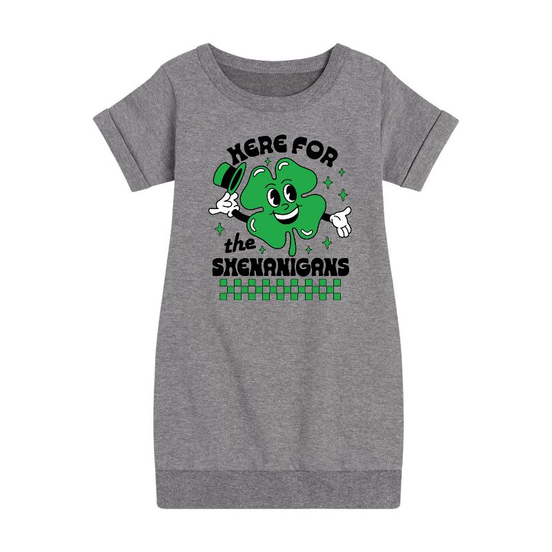 Instant Message - St. Patrick's Day Here For The Shenanigans - Toddler & Youth Girls Fleece Dress - Instant Message is an online specialty fashion retailer for everything from funny to inspiring printed apparel. We offer a range of garments from long sleeve and relaxed fit t-shirts, to lightweight french-terry long sleeve shirts, hoodies and graphic print pullovers. Our products feature fun and trendy graphics that are perfect for any occasion and also make great gifts.