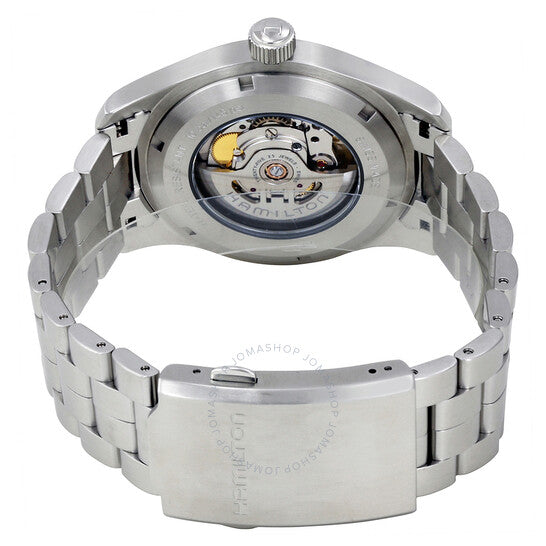 Stainless steel case with a stainless steel bracelet. Fixed stainless steel bezel. Brown dial with luminous fill silver-tone hands and Arabic numeral hour markers. 24 hour markers. Minute markers around the outer rim. Dial Type: Analog. Luminescent hands and markers. Date display at the 3 o'clock position. Hamilton calibre H-10 automatic movement with an 80-hour power reserve. Scratch resistant sapphire crystal. Transparent case back. Case size: 42 mm. Case thickness: 11 mm. Round case shape. Band width: 22 mm. Deployment clasp with a push button release. Water resistant at 100 meters / 330 feet. Functions: date, hour, minute, second. Dress watch style. Watch label: Swiss Made. Hamilton Khaki Field Automatic Brown Dial Men's Watch H70605193