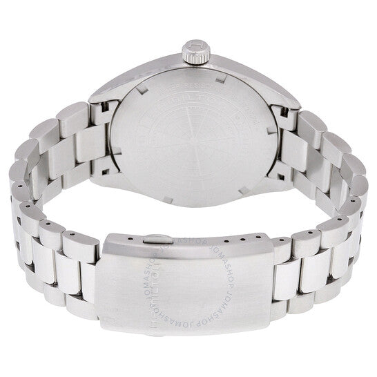 Stainless steel case with a stainless steel bracelet. Fixed stainless steel bezel. Silver dial with silver-tone hands and Arabic numeral hour markers. 24 hour markers. Minute markers around the outer rim. Dial Type: Analog. Luminescent hands. Date display at the 3 o'clock position. Quartz movement. Scratch resistant sapphire crystal. Pull / push crown. Solid case back. Case diameter: 40 mm. Case thickness: 10 mm. Round case shape. Band width: 20 mm. Fold over clasp with a safety release. Water resistant at 50 meters / 165 feet. Functions: date, hour, minute, second. Dress watch style. Watch label: Swiss Made. Hamilton Khaki Field Silver Dial Stainless Steel Men's Watch H68551153.