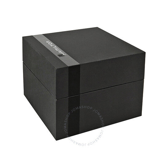 Stainless steel case with a brown leather strap. Fixed stainless steel bezel. Silver dial with luminous hands and Arabic numeral hour markers. Arabic numeral minute markings (at 5 minute intervals). Minute markers around the outer rim. Dial Type: Analog. Luminescent hands and markers. Day of the week and date display at the 3 o'clock position. Automatic movement. Scratch resistant sapphire crystal. Skeleton case back. Case diameter: 38 mm. Case thickness: 12 mm. Round case shape. Band width: 18 mm. Tang clasp. Water resistant at 200 meters/ 660 feet. Functions: hours, minutes, seconds, calendar. Casual watch style. Watch label: Swiss Made. Hamilton Khaki King Pilot Silver Dial Automatic Men's Watch H64425555.