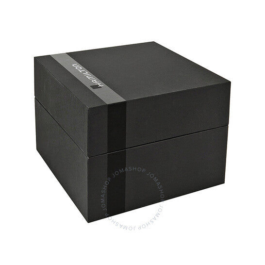 Stainless steel case with a stainless steel bracelet. Fixed stainless steel bezel. Black dial with luminous silver-tone hands and small Arabic numeral hour markers. Arabic numeral minute markers (at 5 minute intervals). Minute markers around the outer rim. Dial Type: Analog. Luminescent hands and markers. Date and day of the week display at the 3 o'clock position. Hamilton calibre H-30 automatic movement, based upon ETA C07.111, containing 25 Jewels, bitting at 21600 vph, and has a power reserve of approximately 80 hours. Scratch resistant sapphire crystal. Screw down crown. Skeleton case back. Round case shape. Case size: 46 mm. Case thickness: 12 mm. Band width: 21 mm. Band length: 8 inches. Deployment clasp. Water resistant at 200 meters / 660 feet. Functions: date, day, hour, minute, second. Khaki Series. Pilot watch style. Watch label: Swiss Made. Hamilton Khaki Pilot Automatic Black Dial Men's Watch H64715135.