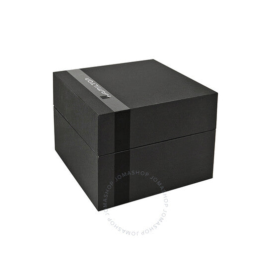 Stainless steel case with a black rubber strap. Fixed stainless steel bezel. Black dial with luminous hands and index hour markers. Nautical ruler on outer dial. minute markers around the outer rim. Dial Type: Analog. Luminescent hands and markers. Day of the week and date display at the 3 o'clock position. Chronograph - three sub-dials displaying: 60 second, 30 minute and 12 hour. Automatic movement. Scratch resistant sapphire crystal. Screw down crown. Skeleton case back. Case diameter: 42 mm. Case thickness: 16 mm. Round case shape. Band width: 20 mm. Band length: 8.5 inches. Deployment clasp with push button. Water resistant at 100 meters / 330 feet. Functions: chronograph, date, day, hour, minute, second. Casual watch style. Hamilton Khaki X-Patrol Automatic Chronograph Black Dial Black Rubber Men's Watch H76556331.
