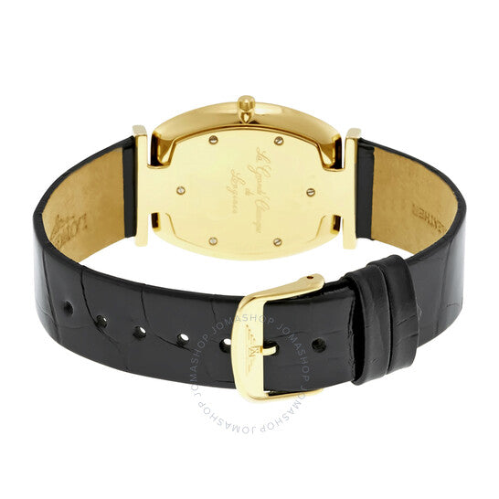 Yellow gold-tone stainless steel case with a black leather strap. Fixed yellow gold-tone bezel. White dial with black hands and index hour markers. Dial Type: Analog. Quartz movement. Scratch resistant sapphire crystal. Pull / push crown. Solid case back. Case size: 29 mm. Case thickness: 6 mm. Tonneau case shape. Tang clasp. Water resistant at 30 meters / 100 feet. Functions: hour, minute. Luxury watch style. Watch label: Swiss Made. Item Variations: L4 705 2 12 2, L4-705-2-12-2, L4/705/2/12/2, L47052122. Longines La Grande Classique White Dial Ladies Watch L4.705.2.12.2.