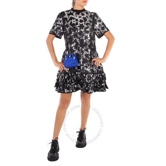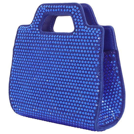 Ferragamo Ladies Handbag. SKU: 214469 762650. Barcode: 8056283169714. Color: Blue. Size: height 7.0 IN x length 7.0 IN x width 2.3 IN. Ferragamo Ladies Blue Crystal Studded Wanda Mini Bag. The Wanda bag features geometric lines and smooth calfskin panels, showcasing an understated design with an integrated handle and satin-finish Gancini buckles on the sides. It can be carried as a handbag or worn over the shoulder with the detachable strap. Made in Italy.