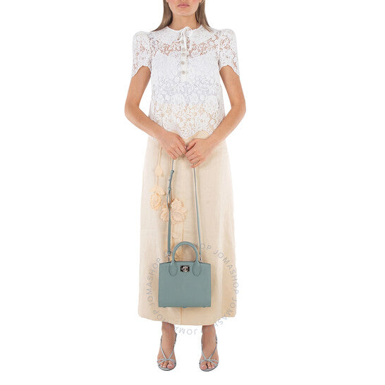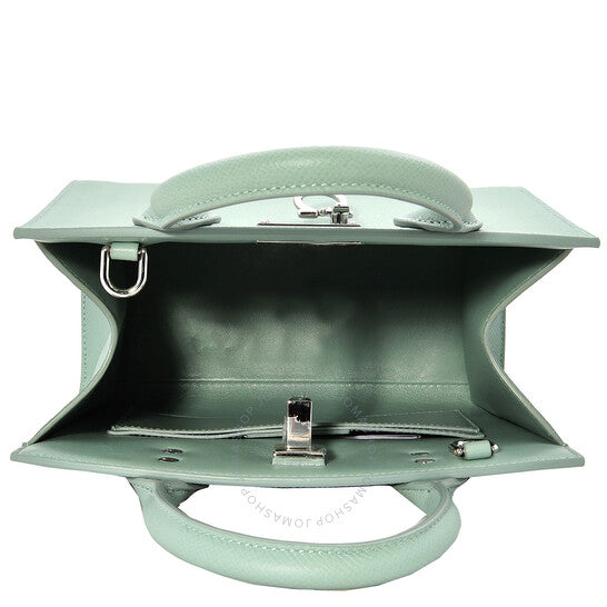 Ferragamo Ladies Mini Bag. SKU: 211424 768823. Color: Green. Ferragamo Ladies Mini Studio Box Small Tote Bag.This crossbody bag features a grained texture with tonal stitching, Gancini flip-lock fastening hardware, two top handles,an adjustable, detachable shoulder strap,metal feet, a main compartment, an internal logo stamp and an internal patch pocket.100% Calfskin. Made in Italy.