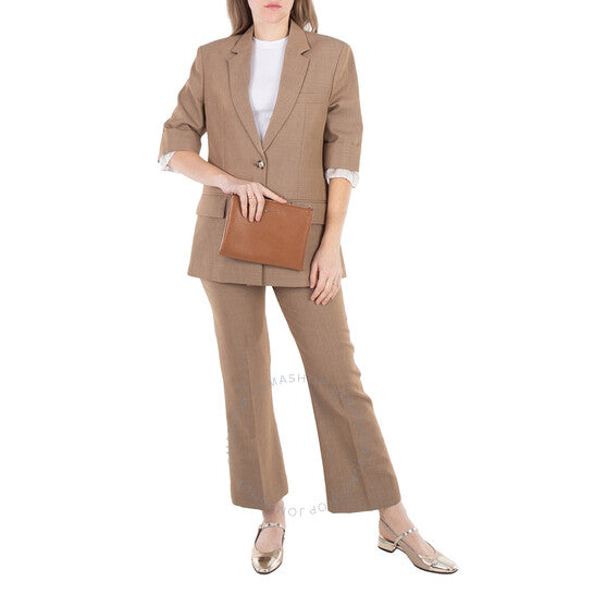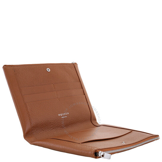Alexander McQueen Ladies Pouch. SKU: 804436 1T1BN 2116. Color: Pecan/Silver. Alexander Mcqueen Ladies Pecan / Silver Logo-Plaque Clutch. This piece is crafted from pebbled texture calf leather and features a press-stud fastening for secure closure. It includes both front and back zip-fastening compartments for convenient storage, along with internal card slots and a slip pocket for added organization. The interior is finished with an embossed logo stamp, adding a subtle touch of branding. Calf Leather 100% Made in Italy.