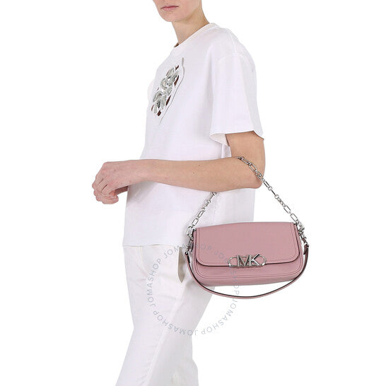 Michael Kors Ladies Shoulder Bag. SKU: 30F2S7PC2L-511. Barcode: 196163509327. Color: Royal Pink. Size: 10.75"W X 6.25"H X 4"D, Michael Kors Ladies Royal Pink Parker Medium Leather Pouchette. Presenting a sleek and streamlined silhouette, the Parker is a stylish offering in supple leather, featuring a flap closure adorned with Empire hardware. The versatile design includes two interchangeable straps â one in leather and the other in chain-link â providing a range of carrying options to suit your style. External features include a convenient back snap pocket, while the interior boasts a back zip pocket and a front slip pocket for efficient organization. The lining, crafted from 100% polyester, adds a luxurious touch, and the secure snap fastening completes the chic and practical design of the Parker.