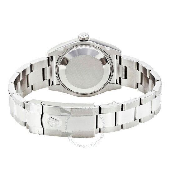 Stainless steel case with a stainless steel Rolex oyster bracelet. Fixed fluted 18kt white gold bezel. Pink dial with silver-tone hands and diamond hour markers. Dial Type: Analog. Date display at the 3 o'clock position. Rolex calibre 2235 automatic movement with a 48-hour power reserve. Scratch resistant sapphire crystal. Screw down crown. Solid case back. Case size: 31 mm. Round case shape. Oysterlock clasp. Water resistant at 100 meters / 330 feet. Functions: date, hour, minute, second. Luxury watch style. Watch label: Swiss Made. Rolex Lady Datejust Automatic Pink Diamond Dial Ladies Watch 178274PDO.