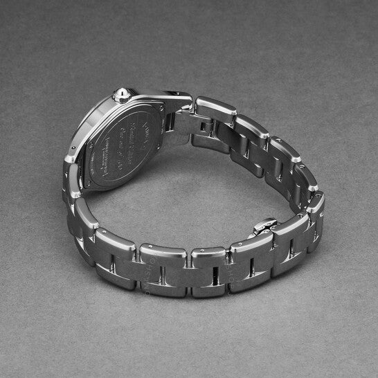 Stainless steel case with a blue satin bracelet. Fixed stainless steel set with diamond bezel. Blue mother of pearl set with diamond dial with silver-tone hands and diamond hour markers. Diamond marks the 3, 9 and 12 o'clock positions. Dial Type: Analog. Quartz movement. Scratch resistant sapphire crystal. Solid case back. Case diameter: 32 mm. Case thickness: 9.26 mm. Round case shape. Folding clasp. Water resistant at 50 meters / 165 feet. Functions: hour, minute. Luxury watch style. Watch label: Swiss Made. Item Variations: MOA10119, M0A10119, 10119. Baume et Mercier Linea NightBlue Mother of Pearl Dial Ladies Watch M0A10119.
