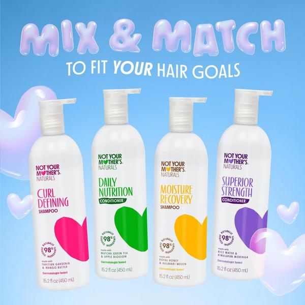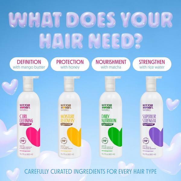 Performance meets purity for zero compromises - only shiny, healthy hair. Not Your Mother's Naturals Ultimate Nutrition Matcha Green Tea & Apple Blossom Conditioner is consciously formulated with 98% naturally derived ingredients to smooth & soften with nutrient-rich, lightweight moisture.