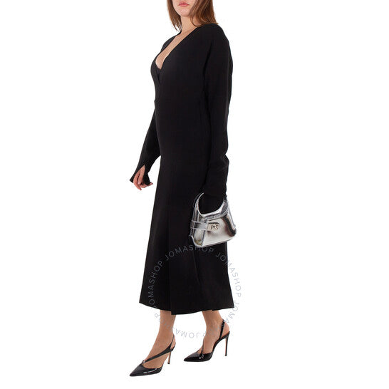 Ferragamo Ladies Mini Bag. SKU: 215943 769141. Color: Grey. Ferragamo Mini Metallic Arch Shoulder Bag.This shoulder bag features a rounded base,a geometric front pocket that secures with a strap and Gancio buckle. The bridge and magnet opening reveal a lined interior with a flat pocket. It can be carried by hand or across the body using the removable shoulder strap. Material: Laminated Calkskin. Made in Italy.