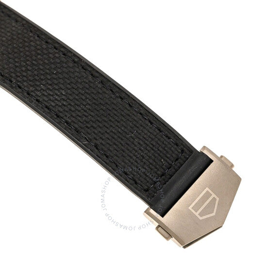 Grey titanium case with a black rubber strap. Fixed grey titanium bezel. Black dial with black hands and index hour markers. Minute markers around the outer rim. Dial Type: Analog. Luminescent hands and markers. Date display at the 6 o'clock position. Chronograph - three sub-dials displaying: 60 second, 30 minute and 12 hour. Tag Heuer Calibre 02 Automatic movement, containing 33 Jewels, composed of 168 parts, bitting at 28800 vph, and has a power reserve of approximately 80 hours. Scratch resistant sapphire crystal. Transparent see through case back. Square case shape, case size: 39 mm. Deployment with push button release clasp. Water resistant at 100 meters / 330 feet. Functions: chronograph, column wheel, date, hour, minute, small second. Additional Info: original box, international warranty card, manual (complete accessories). Monaco Series. Luxury watch style. Watch label: Swiss Made. Tag Heuer Monaco Chronograph Automatic Black Dial Men's Watch CBL2183.FT6236.