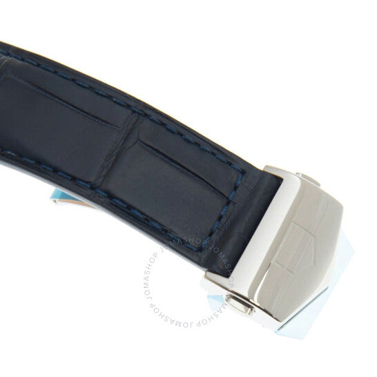Silver-tone stainless steel case with a blue (alligator) leather strap. Fixed silver-tone stainless steel bezel. Blue sunray dial with luminous silver-tone hands and index hour markers. Minute markers. Dial Type: Analog. Luminescent hands and markers. Date display at the 6 o'clock position. Chronograph - three sub-dials displaying: 60 second, 30 minute and 12 hour. Calibre HEUER02 automatic movement with an 80-hour power reserve. Scratch resistant sapphire crystal. Pull / push crown. Transparent case back. Square case shape, case size: 39 mm x 39 mm. Band width: 22mm. Fold over clasp. Water resistant at 100 meters / 330 feet. Functions: chronograph, date, hour, minute, second. Monaco Series. Luxury watch style. Watch label: Swiss Made. Tag Heuer Monaco Chronograph Automatic Blue Sunray Dial Men's Watch CBL2111.FC6453.