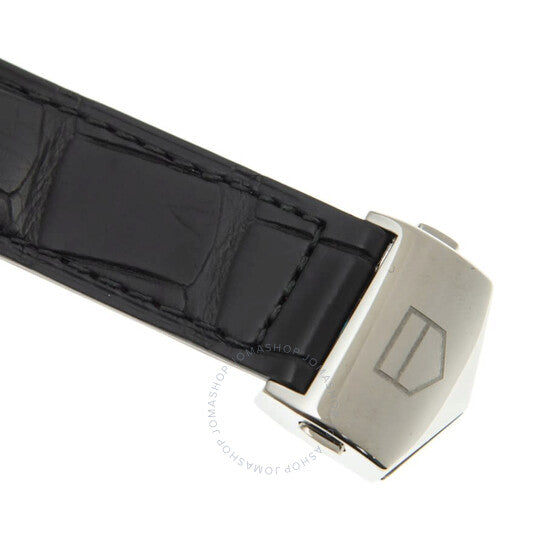 Stainless steel case with a black (alligator) leather strap. Fixed stainless steel bezel. Grey dial with luminous silver-tone hands and index hour markers. Minute markers. Dial Type: Analog. Luminescent hands and markers. Date display at the 6 o'clock position. Chronograph - two black sub-dials displaying: 60 second and 30 minute. Tag Heuer calibre 12 automatic movement, based upon Sellita SW300-1, containing 59 Jewels, bitting at 28800 vph, and has a power reserve of approximately 40 hours. Scratch resistant sapphire crystal. Transparent case back. Square case shape. Case size: 39 mm. Deployment clasp. Water resistant at 100 meters / 330 feet. Functions: chronograph, date, hour, minute, second. Additional Info: limited edition. Monaco Series. Luxury watch style. Watch label: Swiss Made. Tag Heuer Monaco Chronograph Automatic Grey Dial Men's Watch CAW211J-FC6476.