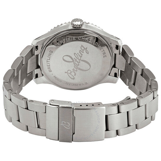 Stainless steel case with a stainless steel bracelet. Bi-directional rotating coin edge stainless steel bezel. Black dial with luminous silver-tone hands and Arabic numeral hour markers. Minute markers around the outer rim. Dial Type: Analog. Luminescent hands and markers. Day of the week display at the 12 o'clock position. Date display at the 6 o'clock positions. Breitling calibre 45 automatic movement, based upon ETA 2834-2, containing 25 Jewels, bitting at 28800 vph, and has a power reserve of approximately 42 hours. Scratch resistant sapphire crystal. Screw locked crown. Solid case back. Round case shape. Case size: 41 mm. Case thickness: 11.19 mm. Band width: 21 mm. Fold over clasp with a safety release. Water resistant at 100 meters / 330 feet. Functions: date, day, hour, minute, second, chronometer. Navitimer 8 Series. Luxury watch style. Watch label: Swiss Made. Item Variations: A4533010-BG86-187A. Breitling Navitimer 8 Automatic Chronometer Black Dial Men's Watch A45330101B1A1.