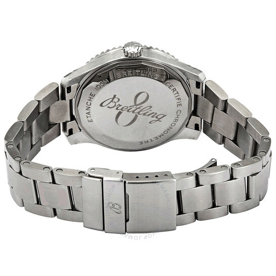 Stainless steel case with a stainless steel bracelet. Bi-directional rotating coin edge stainless steel bezel. Blue dial with luminous silver-tone hands and Arabic numeral hour markers. Arabic numeral minute markers (at 5 minute intervals). Minute markers around the outer rim. Dial Type: Analog. Luminescent hands and markers. Day of the week display centered on the 12 o'clock position. date display at the 6 o'clock position. Breitling calibre 45 automatic movement, based upon ETA 2834-2, containing 25 Jewels, bitting at 28800 vph, and has a power reserve of approximately 42 hours. Scratch resistant sapphire crystal. Screw locked crown. Solid case back. Round case shape. Case size: 41 mm. Case thickness: 11.19 mm. Band width: 21 mm. Fold over clasp with a safety release. Water resistant at 100 meters / 330 feet. Functions: date, day, hour, minute, second, chronometer. Navitimer 8 Series. Luxury watch style. Watch label: Swiss Made. Item Variations: A4533010-CA10-187A. Breitling Navitimer 8 Automatic Chronometer Blue Dial Men's Watch A45330101C1A1.