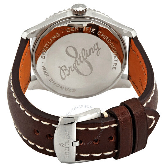 Stainless steel case with a brown (calfskin) leather strap. Bi-directional rotating stainless steel bezel. Blue dial with luminous silver-tone hands and Arabic numeral hour markers. Date display at the 6 o'clock position, Day of the week display centered on the 12 o'clock position. Minute markers around the outer rim. Dial Type: Analog. Luminescent hands and markers. Day of the week and date display at the 12 and 6 o'clock position. Breitling calibre 45 automatic movement with a 42-hour power reserve. Scratch resistant sapphire crystal. Screw locked crown. Solid case back. Round case shape. Case size: 41 mm. Case thickness: 11.19 mm. Band width: 21 mm. Tang clasp. Water resistant at 100 meters / 330 feet. Functions: date, day, hour, minute, second, chronometer. Luxury watch style. Watch label: Swiss Made. Item Variations: A45330101C1X2. Breitling Navitimer 8 Automatic Chronometer Blue Dial Men's Watch A45330101C1X2.