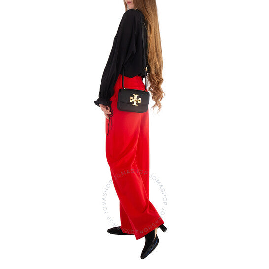 Tory Burch Ladies Shoulder Bag. SKU: 155671-001. Color: Black. Size: H: 5.3" x L: 7.5" x D: 2.6". Tory Burch Pebbled Leather Small Eleanor Shoulder Bag. The Eleanor bag is crafted from pebbled leather with napa leather trim, has a flap secured by a magnetic snap, an adjustable leather crossbody strap with a 21.3" (54 cm) drop, and offers one interior zipper pocket along with two slit pockets. 100% Calf Leather.