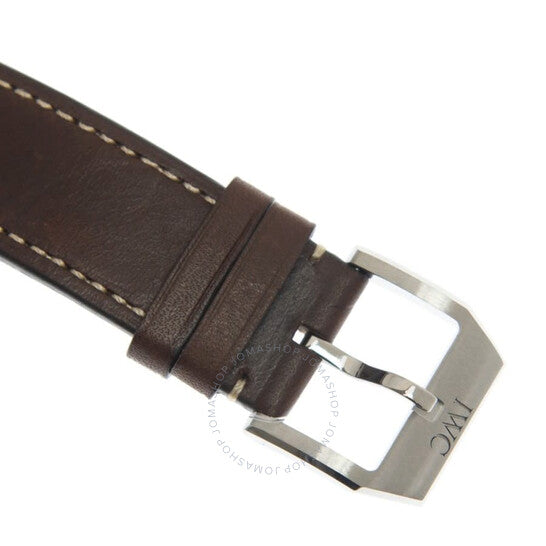 Stainless steel case with a brown (calfskin) leather strap. Fixed stainless steel bezel. Green dial with luminous silver-tone hands and Arabic numeral hour markers. Minute markers around the outer rim. Luminescent hands and markers. Day of the week and date display at the 3 o'clock position. Chronograph - three sub-dials displaying: 60 second, 30 minute and 1/10th of a second. IWC calibre 69385 automatic movement, containing 33 Jewels, composed of 231 parts, bitting at 28800 vph, and has a power reserve of approximately 46 hours. Scratch resistant sapphire crystal. Screw down crown. Transparent case back. Round case shape. Case size: 41 mm. Case thickness: 14.5 mm. Band width: 22 mm. Tang clasp. Water resistant at 100 meters / 330 feet. Functions: chronograph, hour, minute, second. Pilot Series. Sport watch style. Watch label: Swiss Made. IWC Pilot Chronograph 41 Automatic Green Dial Men's Watch IW388103.