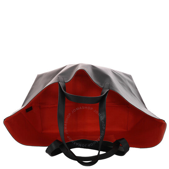 Cahu Ladies Shoulder Bag. SKU: PMBL-O -BLACK - ORANGE. Material: Canvas;Cotton. Closure Type: Open. Color: Black. Size: Medium. Cahu Pratique Medium Black-Orange Pvc Canvas Tote. Features a waterproof PVC canvas exterior and a cotton lining. It includes short handles and long leather straps for versatile carrying by hand, elbow, or shoulder. The main compartment also features an inside pocket. 1000% Cotton, 100% Canvas.