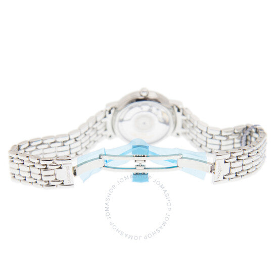 Silver-tone stainless steel case with a silver-tone stainless steel bracelet. Fixed silver-tone stainless steel bezel. Grey dial with silver-tone hands and index hour markers. Minute markers around the outer rim. Dial Type: Analog. Date display at the 3 o'clock position. Longines Calibre L619 automatic movement with a 42-hour power reserve. Scratch resistant sapphire crystal. Pull / push crown. Transparent case back. Round case shape. Case size: 30 mm. Band width: 16 mm. Hidden clasp. Water resistant at 30 meters / 100 feet. Functions: date, hour, minute, second. Luxury watch style. Watch label: Swiss Made. Longines Presence Automatic Grey Dial Ladies Watch L4.322.4.72.6.
