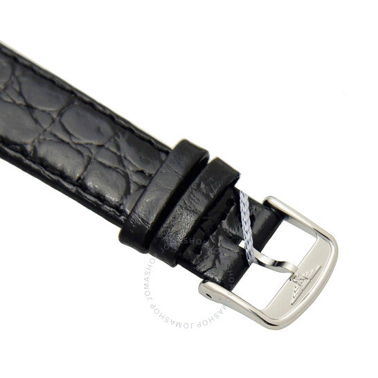 Silver-tone stainless steel case with a black leather strap. Fixed silver-tone stainless steel bezel. White dial with silver-tone hands and Roman numeral hour markers. Minute scale around the inner rim. Dial Type: Analog. Date display at the 3 o'clock position. Longines Calibre L156 quartz movement. Scratch resistant sapphire crystal. Pull / push crown. Round case shape. Case size: 30 mm. Water resistant at 30 meters / 100 feet. Functions: date, hour, minute, second. Luxury watch style. Watch label: Swiss Made. Longines Presence Quartz White Dial Ladies Watch L4.320.4.11.2.