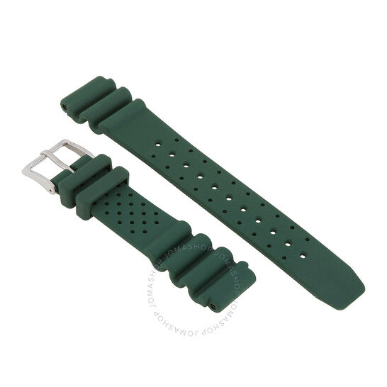 Silver-tone stainless steel case and bracelet. Uni-directional rotating green stainless steel bezel. White dial with silver-tone hands and index hour markers. Minute markers around the outer rim. Dial Type: Analog. Luminescent hands and markers. Day of the week and date display at the 3 o'clock position. Citizen Caliber 8204 automatic movement. Scratch resistant mineral crystal. Screw down crown. Solid case back. Round case shape, case size: 42 mm, case thickness: 12.8 mm. Water resistant at 200 meters / 660 feet. Functions: date, day, hour, minute, second. Promaster Series. Dive watch style. Citizen Promaster Automatic White Dial Men's Watch NY0168-64A.