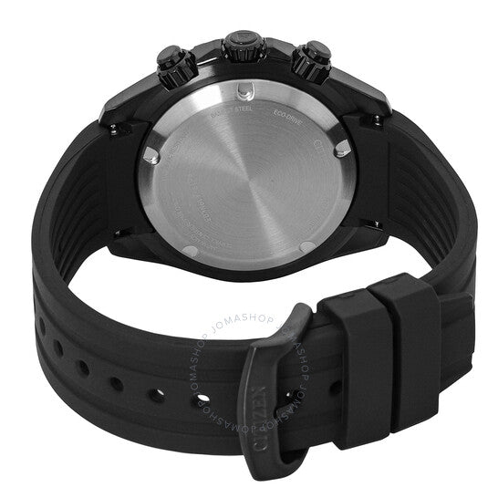 Black IP stainless steel case with a black rubber strap. Uni-directional rotating black IP stainless steel bezel. White dial with black hands and index hour markers. Minute markers around the outer rim. Dial Type: Analog. Luminescent hands and markers. Date display at the 3 o'clock position. Chronograph - three sub-dials displaying: 60 second, 60 minute and 24 hour. Citizen Caliber Eco-Drive B612 eco-drive movement. Scratch resistant mineral crystal. Screw down crown. Solid case back. Round case shape, case size: 44.5 mm. Fold over clasp with a safety release. Water resistant at 200 meters / 660 feet. Functions: chronograph, date, hour, minute, second, solar-powered. Promaster Marine Series. Dive watch style. Watch label: Japan Movt. Citizen Promaster Marine Chronograph Eco-Drive White Dial Men's Watch CA0825-05A.