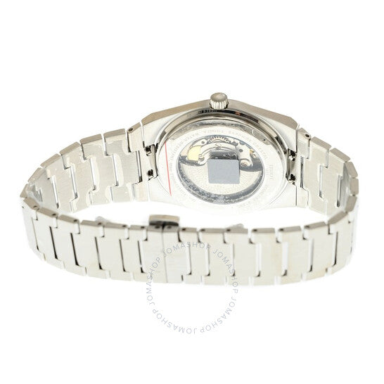 Silver-tone 316L stainless steel case with a silver-tone stainless steel bracelet. Fixed silver-tone stainless steel bezel. Green dial with silver-tone hands and index hour markers. Minute markers around the outer rim. Dial Type: Analog. Luminescent hands and markers. Date display at the 3 o'clock position. Tissot Calibre Powermatic 80 (C07.111) Automatic movement, based upon ETA 2824-2, containing 23 Jewels, bitting at 21600 vph, and has a power reserve of approximately 80 hours. Scratch resistant sapphire crystal. Transparent see through case back. Tonneau case shape, case size: 40 mm. Deployment with push button release clasp. Water resistant at 100 meters / 330 feet. Functions: date, hour, minute, second. Prx Powermatic 80 Series. Casual watch style. Watch label: Swiss Made. Tissot PRX Powermatic 80 Automatic Green Dial Men's Watch T137.407.11.091.00.