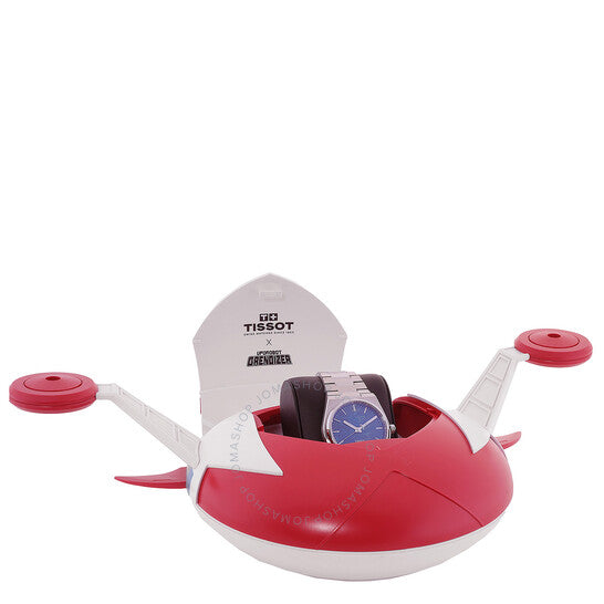 Silver-tone 316L stainless steel case and bracelet. Fixed silver-tone 316L stainless steel bezel. Blue dial with silver-tone hands and index hour markers. Minute markers around the outer rim. Dial Type: Analog. Luminescent hands and markers. Tissot Calibre Powermatic 80.601 Automatic movement, based upon Tissot Calibre Powermatic 80, containing 23 Jewels, bitting at 21600 vph, and has a power reserve of approximately 80 hours. Scratch resistant sapphire crystal. Transparent see through case back. Tonneau case shape, case size: 40 mm, case thickness: 10.9 mm. Band width: 12 mm. Butterfly with push button release clasp. Water resistant at 100 meters / 330 feet. Functions: hour, minute, second. Prx Ufo Robot Grendizer Series. Casual watch style. Watch label: Swiss Made. Tissot PRX Ufo Robot Grendizer Men's Watch T137.407.11.041.02.