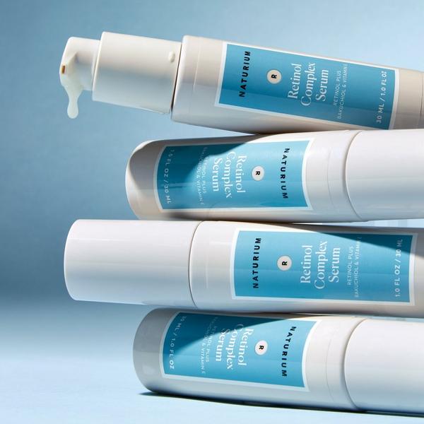 Naturium's Retinol Complex Serum is formulated with encapsulated retinol, a natural bio-retinol, and bakuchiol, a plant-derived retinol alternative, that helps improve the look of fine lines and wrinkles, elasticity, and uneven tone, leaving skin more radiant and healthier-looking.