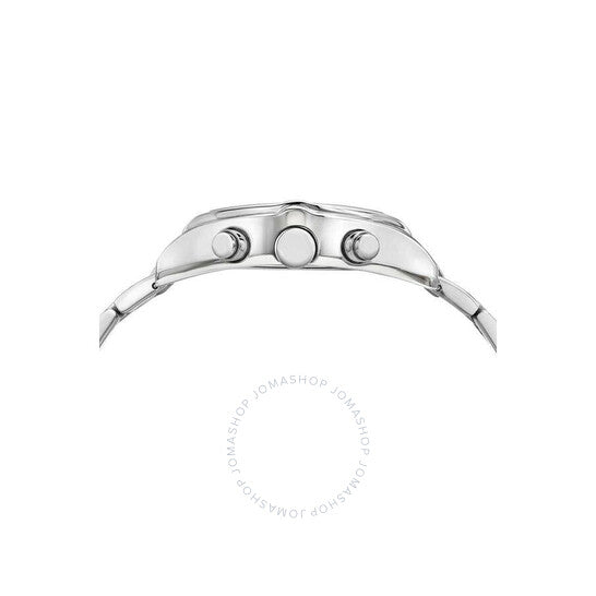 Porsamo Bleu Roman Men's Chronograph Watch With Stainless Steel Case and Bracelet; Silver and White Silver-tone stainless steel case and bracelet. Fixed silver-tone stainless steel bezel. White dial with silver-tone hands and index hour markers. Minute markers around the outer rim. Dial Type: Analog. Luminescent hands and markers. Chronograph - three sub-dials displaying: 60 second, 30 minute and 24 hour. Miyota JS 20 Quartz quartz movement. Scratch resistant mineral crystal. Pull / push crown. Solid case back. Round case shape, case size: 42 mm, case thickness: 12 mm. Band width: 22 mm. Deployment with push button release clasp. Water resistant at 50 meters / 165 feet. Functions: chronograph, hour, minute, second. Roman Series. Luxury watch style. Watch label: Japan Movt. Porsamo Bleu Roman Chronograph Quartz White Dial Men's Watch 1291AROS.