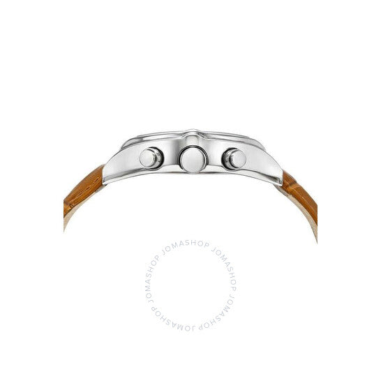 Porsamo Bleu Roman Chronograph Men's Watch; Genuine Leather Strap; Silver and Brown Silver-tone stainless steel case with a brown leather strap. Fixed silver-tone stainless steel bezel. White dial with silver-tone hands and index hour markers. Minute markers around the outer rim. Dial Type: Analog. Luminescent hands and markers. Chronograph - three sub-dials displaying: 60 second, 30 minute and 24 hour. Miyota JS 20 Quartz quartz movement. Scratch resistant mineral crystal. Pull / push crown. Solid case back. Round case shape, case size: 42 mm, case thickness: 12 mm. Band width: 22 mm. Buckle clasp. Water resistant at 50 meters / 165 feet. Functions: chronograph, hour, minute, second. Roman Series. Luxury watch style. Watch label: Japan Movt. Porsamo Bleu Roman Chronograph Quartz White Dial Men's Watch 1292CROL.