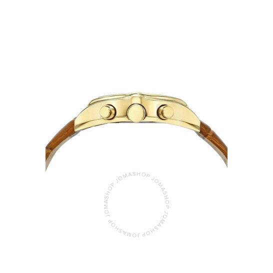 Porsamo Bleu Roman Chronograph Men's Watch; Genuine Leather Strap; Gold and Brown Yellow gold-tone stainless steel case with a brown leather strap. Fixed yellow gold-tone stainless steel bezel. White dial with yellow gold-tone hands and index hour markers. Minute markers around the outer rim. Dial Type: Analog. Luminescent hands and markers. Chronograph - three sub-dials displaying: 60 second, 30 minute and 24 hour. Miyota JS 20 Quartz quartz movement. Scratch resistant mineral crystal. Pull / push crown. Solid case back. Round case shape, case size: 42 mm, case thickness: 12 mm. Band width: 22 mm. Buckle clasp. Water resistant at 50 meters / 165 feet. Functions: chronograph, hour, minute, second. Roman Series. Luxury watch style. Watch label: Japan Movt. Porsamo Bleu Roman Chronograph Quartz White Dial Men's Watch 1292DROL.